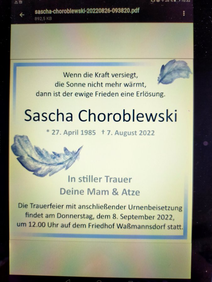 Das erste Weihnachten ohne dich, das erste Silvester ohne dich. Warum nur? Warum?